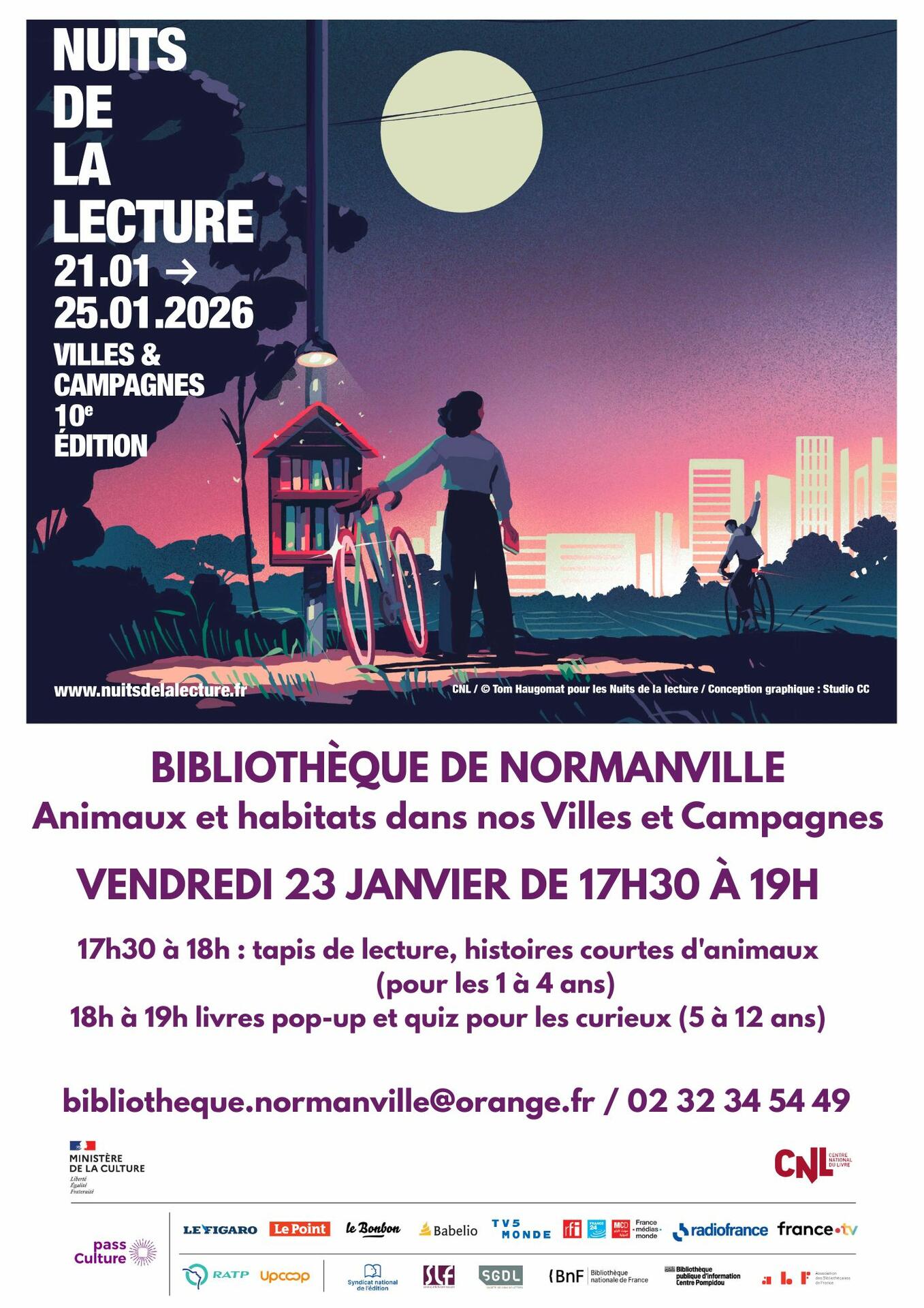 A l'occasion des nuits de la lecture, la Bibliothèque de Normanville organise une soirée lecture.